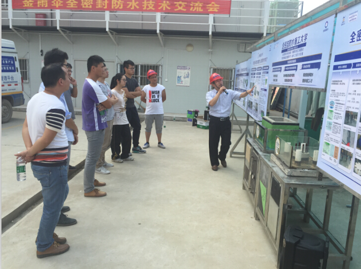通過(guò)此次講座,項(xiàng)目部成員進(jìn)一步了解了如何能夠一次性解決屋面,地下室,廚房,衛(wèi)生間等各個(gè)部位防水的難題,也知道如何解決因?yàn)槁┧斐傻姆课荻畏敌薜膯?wèn)題,將防水工程施工提高水平。