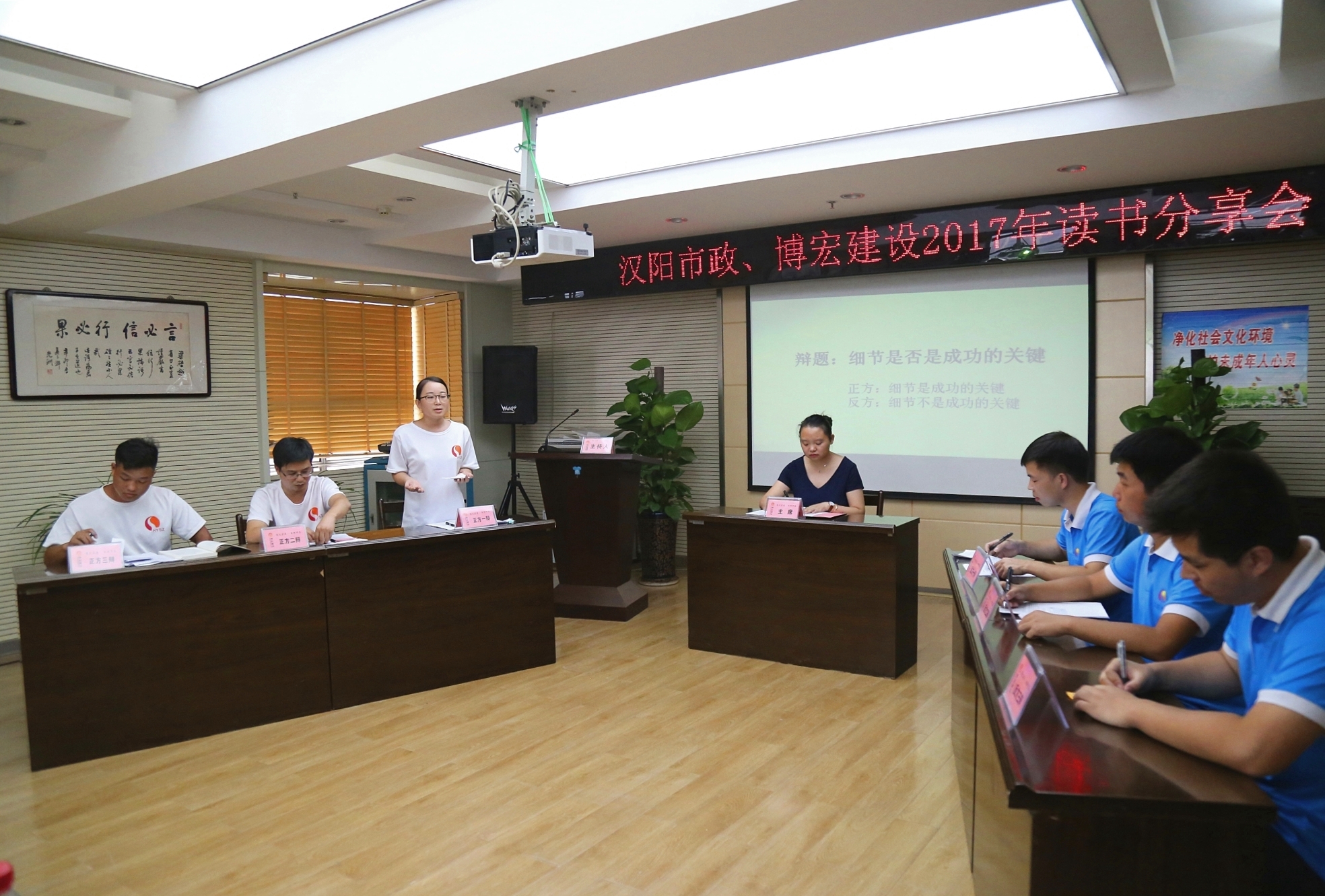 歌德曾說:“讀一本好書就是和高尚的人談話?!睗h陽市政博宏公司為在全公司營造濃厚的讀書氛圍,打造“書香博宏”,7月31日,一場關于“細節(jié)”的讀書分享活動在公司大會議室順利召開,集團公司辦公室副主任冷雪、各兄弟單位辦公室主任等均參加了本次活動。
