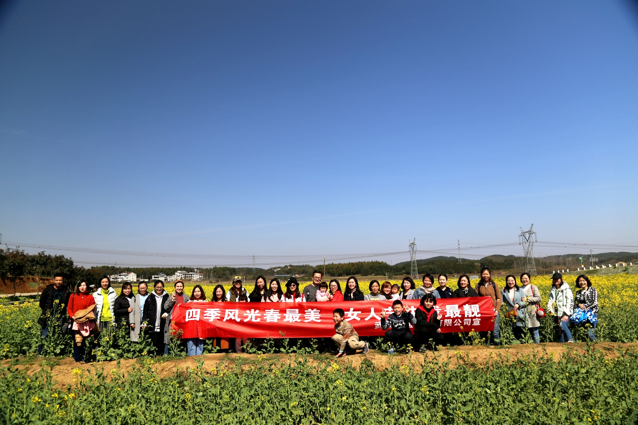活動(dòng)當(dāng)天,春光和熙,帶著歡聲笑語,全體女職工一路驅(qū)車來到了湖北咸寧某油菜花基地,在這片黃燦燦的世界里,“女神”們游走在田間小路,連小蜜蜂也“嗡嗡嗡”地歡迎她們的游覽。湛藍(lán)的天空、金黃的油菜花以及一張張綻放的笑顏,那是這個(gè)春天里最美的一幅畫。