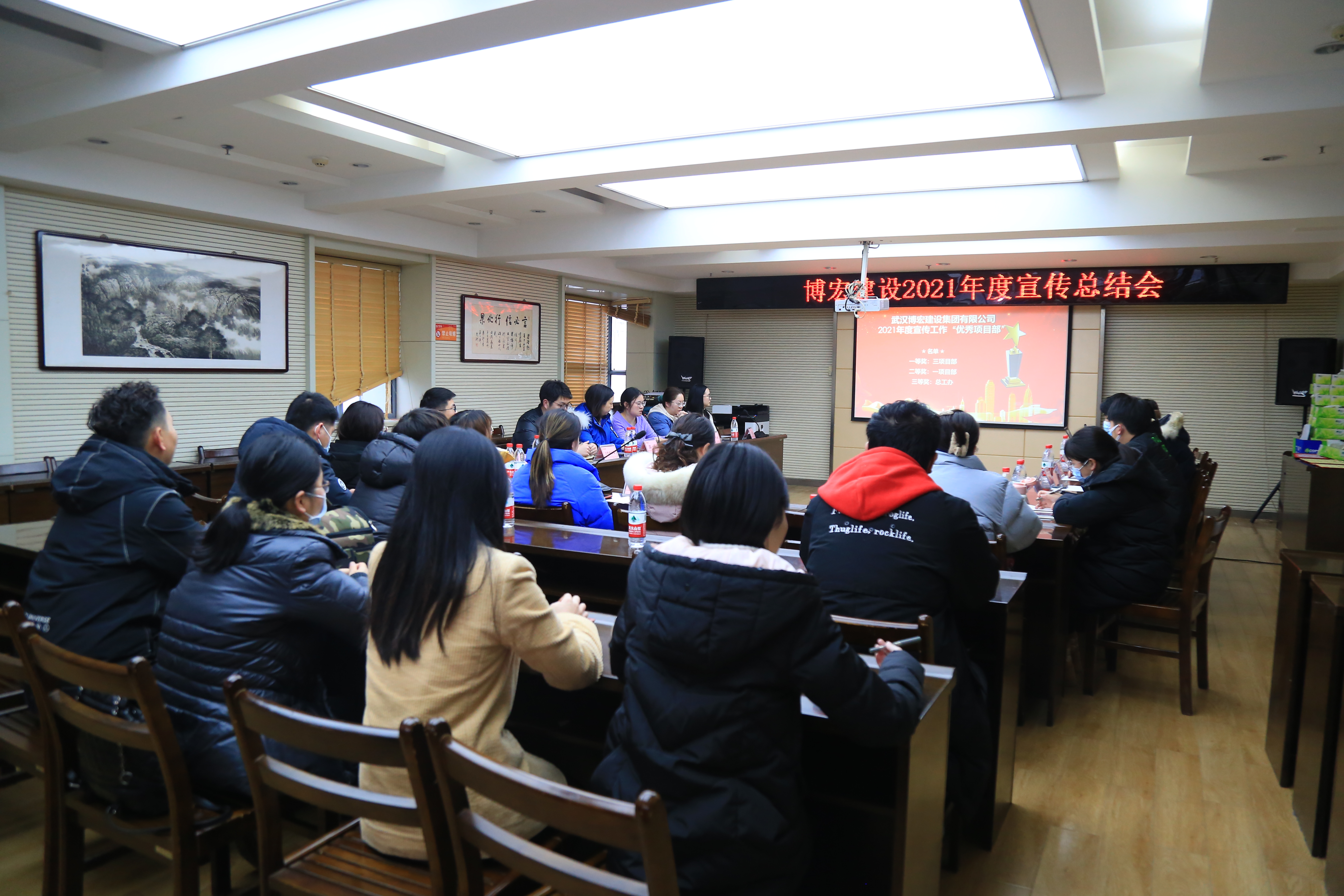 1月24日下午,博宏建設(shè)2021年度宣傳工作總結(jié)表彰大會在公司會議室召開,博宏建設(shè)黨支部副書記郭一清以及公司一線宣傳員共計26人參會。