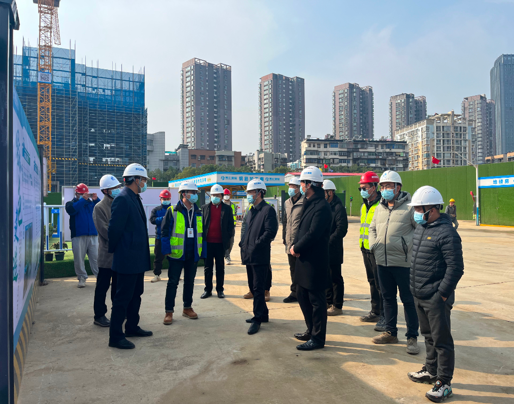 12月7日,湖北省建設(shè)科技與建筑節(jié)能辦公室主任董文斌、宜昌市建筑市場和建設(shè)工程質(zhì)量安全監(jiān)督站站長王梁、宜昌市建筑節(jié)能推廣中心黨支部書記、主任章鴻一行蒞臨天創(chuàng)覽江府項(xiàng)目現(xiàn)場考察調(diào)研,博宏建設(shè)集團(tuán)副總經(jīng)理周昌文陪同調(diào)研。