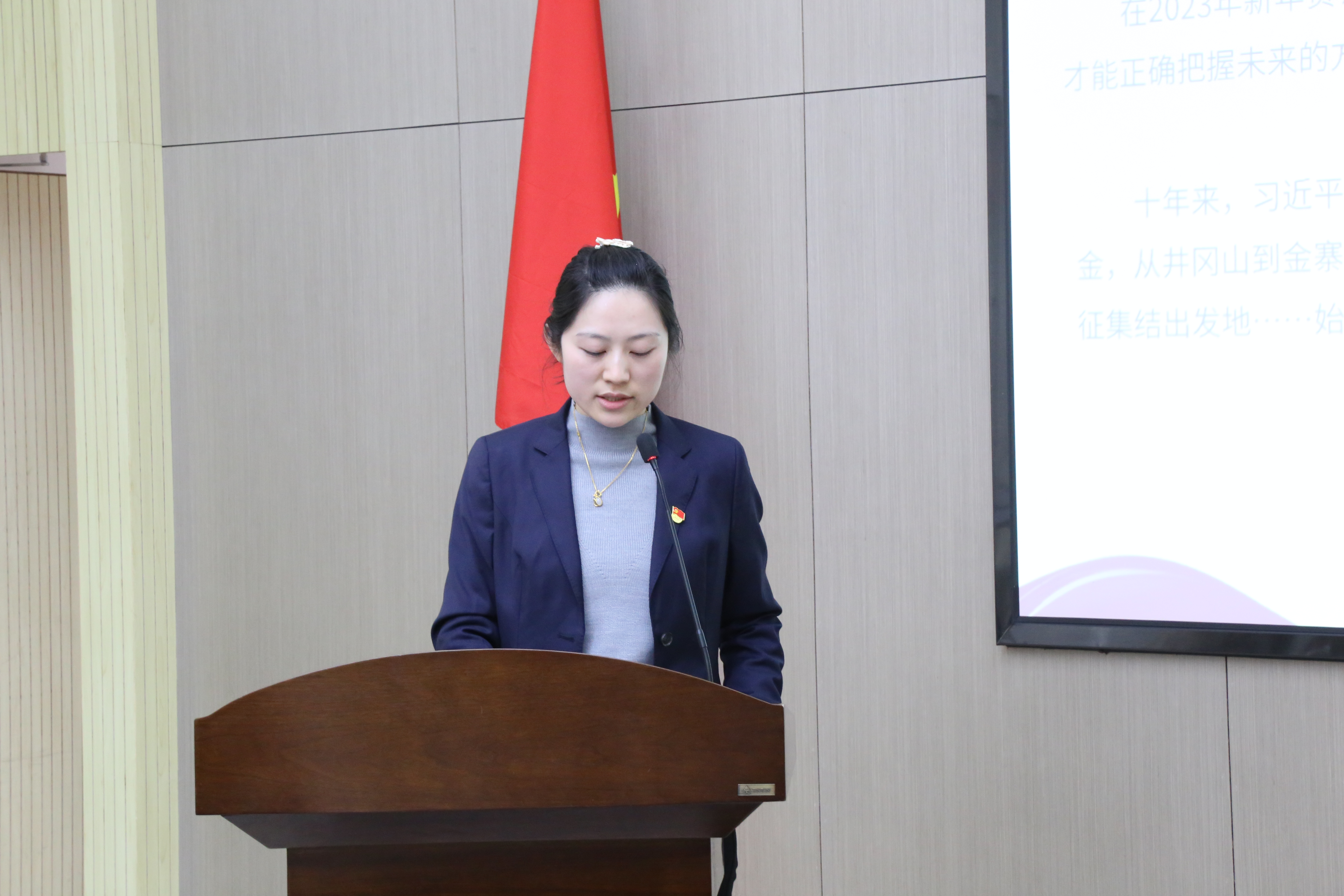 漢陽市政集團機關(guān)第一黨支部黨員洪珂為帶領(lǐng)全體黨員學(xué)習(xí)習(xí)近平總書記重要講話——2023年新年賀詞。講話精神也讓全體黨員更加深刻地認識到今天的中國是夢想接連現(xiàn)實的中國、是充滿生機活力的中國、是賡續(xù)民族精神的中國、是緊密聯(lián)系世界的中國。明天的中國,力量源于團結(jié),全體黨員應(yīng)當厚植家國情懷、涵養(yǎng)進取品格,以奮斗姿態(tài)激揚青春,不負時代,不負華年。
