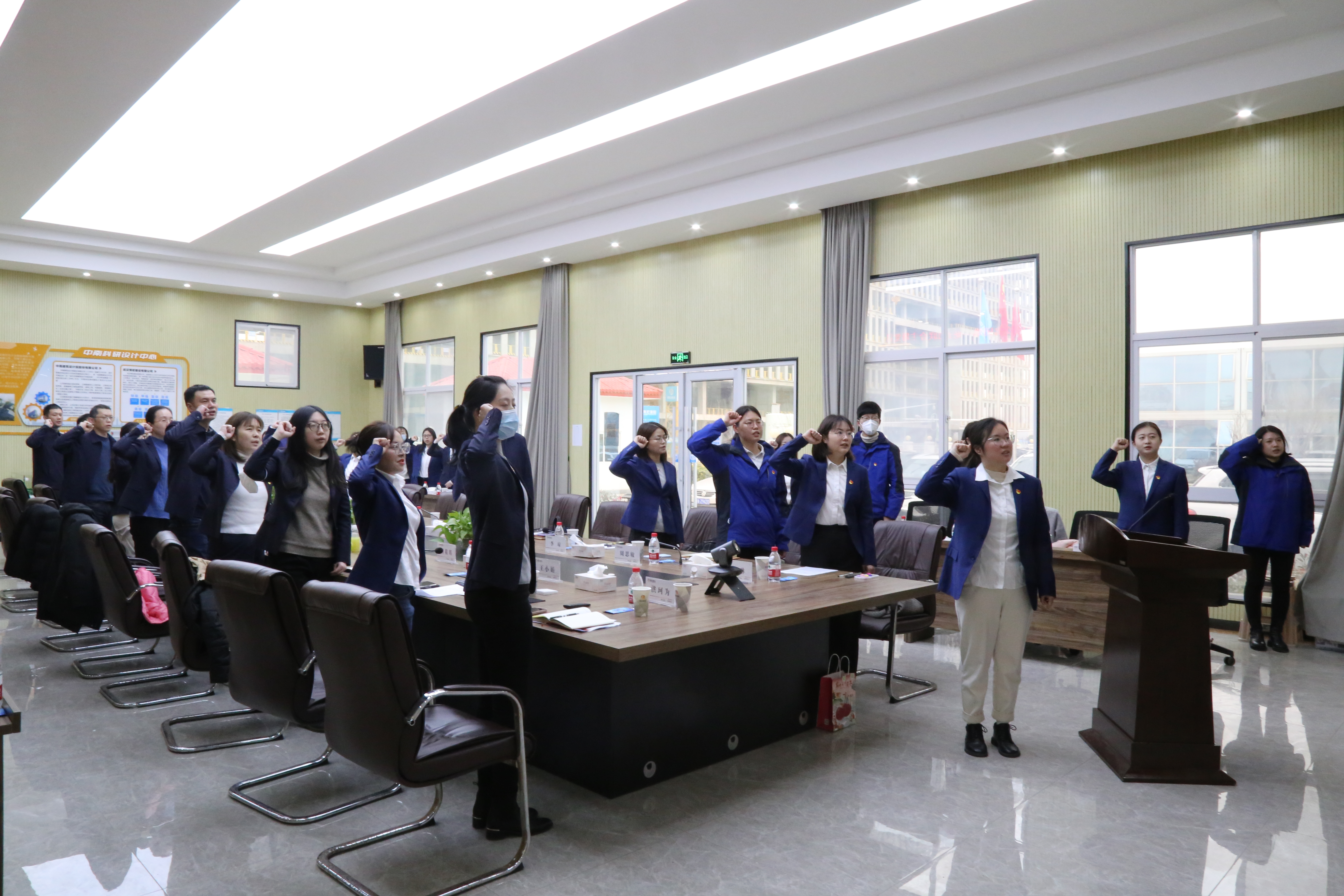 黨員王小娟從現(xiàn)場亮點展示、工程業(yè)績展示、2023年重大節(jié)點項目展示三個維度出發(fā),講述了近年來公司所取得的斐然業(yè)績。風(fēng)勁帆滿圖新志,砥礪奮進正當時,開工以來,博宏人正以斗志昂揚的姿態(tài)加速推進年后復(fù)工復(fù)產(chǎn)工作,正如鏗鏘有力的開工誓詞中所說:我們將深推精益建造,踐行完美履約,不忘初心、繼續(xù)前行,精誠協(xié)作、攜手共贏,狠抓工程進度,確保質(zhì)量安全,用拼的姿態(tài)、搶的意識、爭的勁頭,力爭開門紅、確保全年紅!