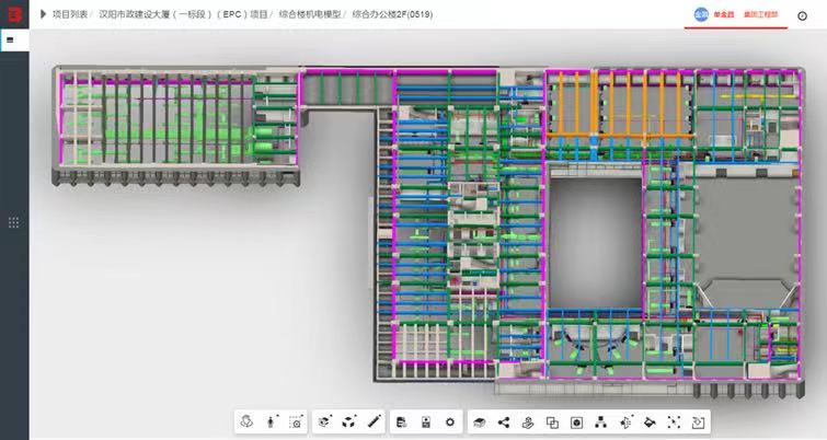 研究生期間彭迎研究的方向是BIM技術土建方向,但工作需要盡快上手的是BIM技術機電方向,一時讓她有點手足無措,“有問題先嘗試解決,辦法總比困難多”踏實肯干的她選擇了迎難而上,白天她跟著師傅們不厭其煩地穿梭于現(xiàn)場的各個樓棟,在工作過程中多看、多問、多記、多學,晚上回到宿舍,她通過閱讀大量BIM機電方向相關書籍以及上網(wǎng)課等方式自學相關知識,有時為了弄懂一個問題常常奮戰(zhàn)到深夜。從入門到逐漸架構起整個知識體系,彭迎經(jīng)歷了半年的時間。在自學期間,她遇到了很多困難和瓶頸,但因為熱愛,從未想過放棄。“那段時間很累但是也很充實,每天都能學習到新的東西,讓我對機電的了解越來越深入,也越發(fā)體會到了BIM的魅力??粗约豪L制的BIM圖紙粘貼在了施工墻上,工人按照圖紙可以搭建出符合標準的砌體,心中的喜悅是無法用語言描述的。”回憶起那段時光時,她臉上總是帶著微笑。理論上的認真鉆研,現(xiàn)場中的建模實踐,彭迎的專業(yè)技術在不懈努力中愈見純熟,在負責總部大樓地上部分機電BIM工作過程中考取了BIM二級設備證,也和同事們一起獲得了多項國家級、省市級BIM獎項,熱愛與進取讓她一次次品嘗到了成功的碩果。