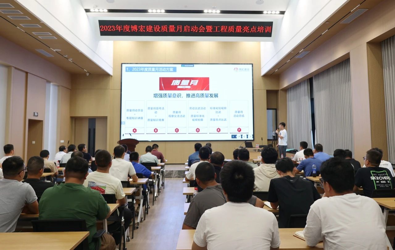今年9月是第45個全國質(zhì)量月,為全面貫徹黨的二十大精神,落實(shí)《質(zhì)量強(qiáng)國建設(shè)綱要》部署,促進(jìn)質(zhì)量強(qiáng)國建設(shè)。9月15日下午,博宏建設(shè)舉辦以“增強(qiáng)質(zhì)量意識,推進(jìn)質(zhì)量發(fā)展”為主題的2023年質(zhì)量月啟動會暨工程質(zhì)量亮點(diǎn)培訓(xùn),黨委書記、董事長、總經(jīng)理鄒勇,總經(jīng)理助理李暉,質(zhì)量管理部部長、市內(nèi)外各項目部負(fù)責(zé)人及質(zhì)量崗位人員共計101人線上線下同步參與活動。