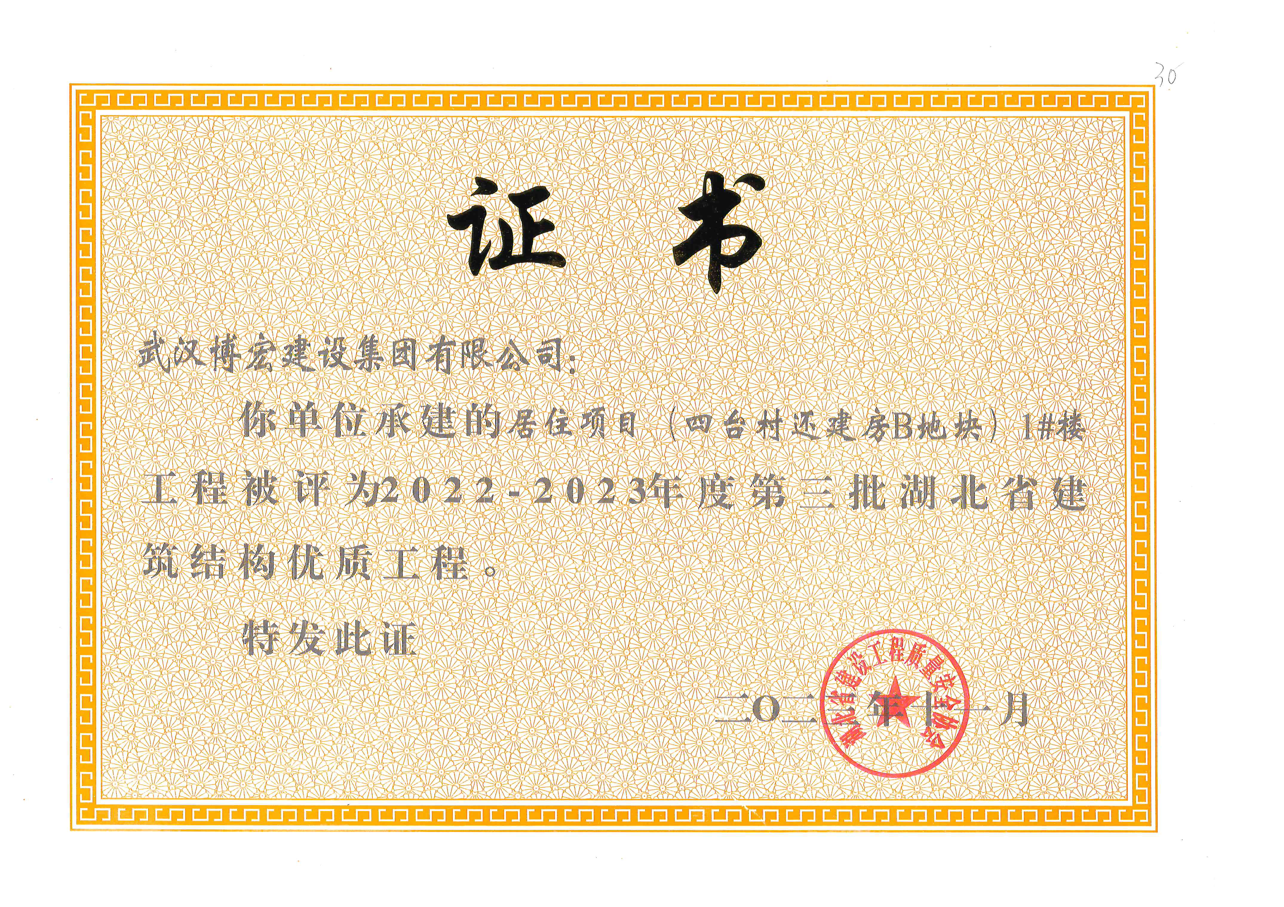 近日,湖北省建設(shè)工程質(zhì)量安全協(xié)會公布2022-2023年度第三批湖北省建筑結(jié)構(gòu)優(yōu)質(zhì)工程項(xiàng)目名單,由博宏建設(shè)集團(tuán)承建的居住項(xiàng)目(黃金口村還建房B地塊)17#樓,居住項(xiàng)目(四臺村還建房B地塊)1#樓,新建商業(yè)服務(wù)業(yè)設(shè)施項(xiàng)目(中南科研設(shè)計中心)副樓,商業(yè)、商務(wù)設(shè)施、居住項(xiàng)目(產(chǎn)權(quán)調(diào)換房)3#樓、6#樓,國投·汀蘭7#樓、8#樓、9#樓、12#樓,隨州市中心看守所辦公區(qū)、監(jiān)區(qū)及配電房榮獲湖北省建筑結(jié)構(gòu)優(yōu)質(zhì)工程獎。