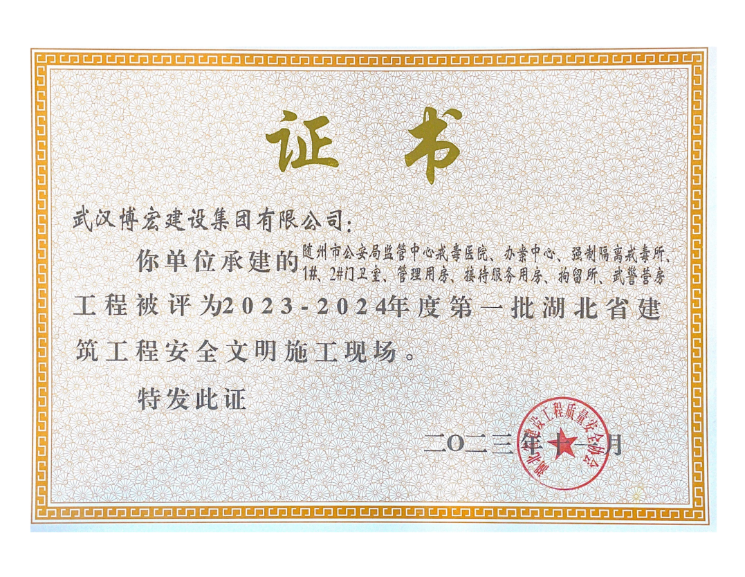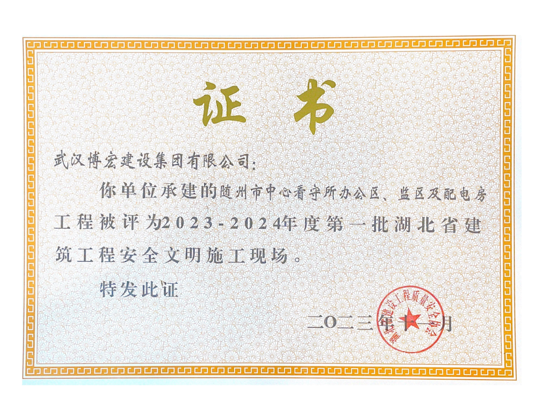 近日,湖北省建設(shè)工程質(zhì)量安全協(xié)會(huì)公布了2023-2024年度第一批湖北省建筑工程安全文明施工現(xiàn)場名單,由博宏建設(shè)集團(tuán)承建的隨州市中心看守所辦公區(qū)、監(jiān)區(qū)及配電房;黃金口產(chǎn)業(yè)園商業(yè)設(shè)施、居住、公園綠地建設(shè)項(xiàng)目;新建工業(yè)項(xiàng)目(漢陽市政科研中心)(EPC)等8項(xiàng)工程獲評湖北省建筑工程安全文明施工現(xiàn)場。